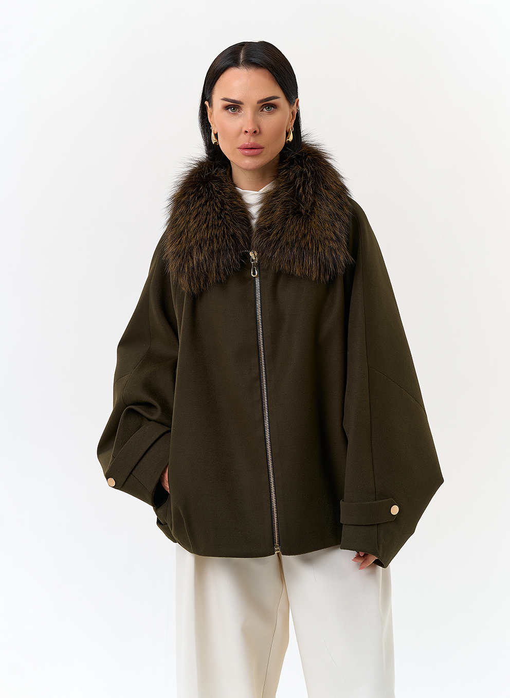 Отделка воротника - мех лисы, цвет зеленый