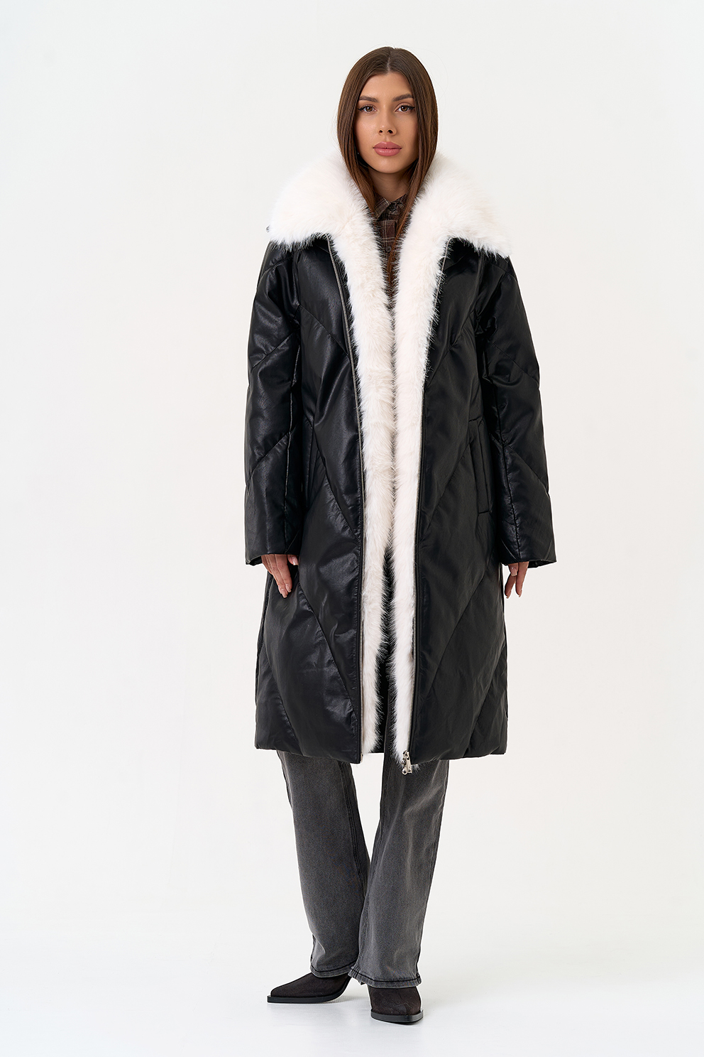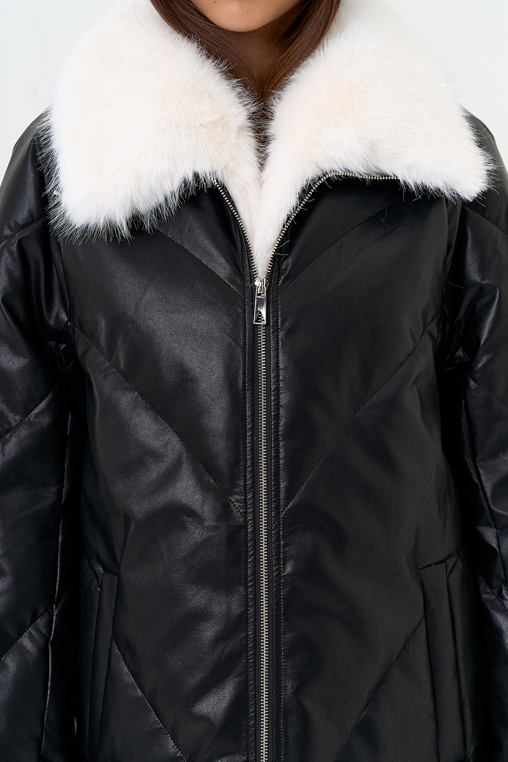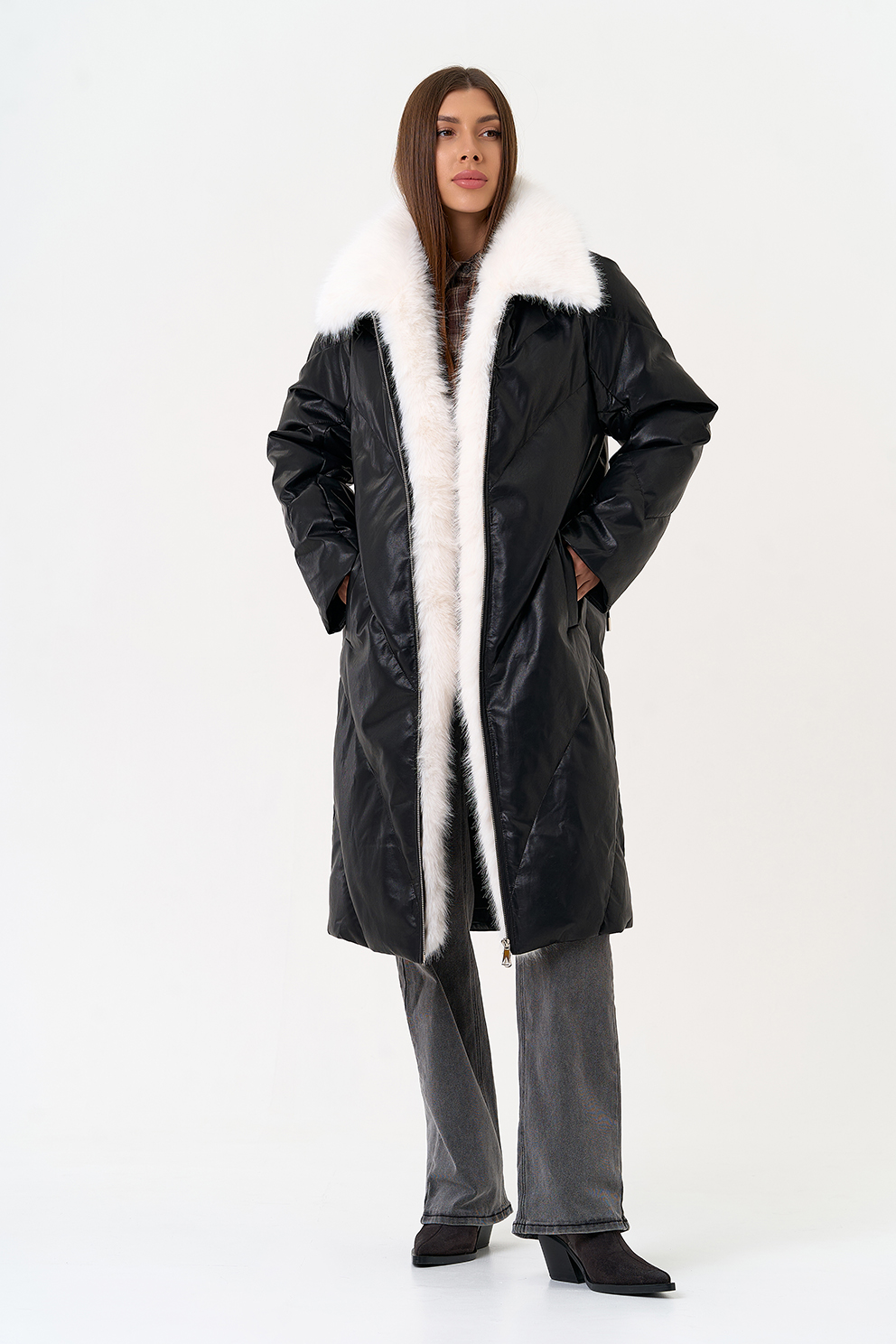 Отделка воротника - съемный эко мех, цвет белый
