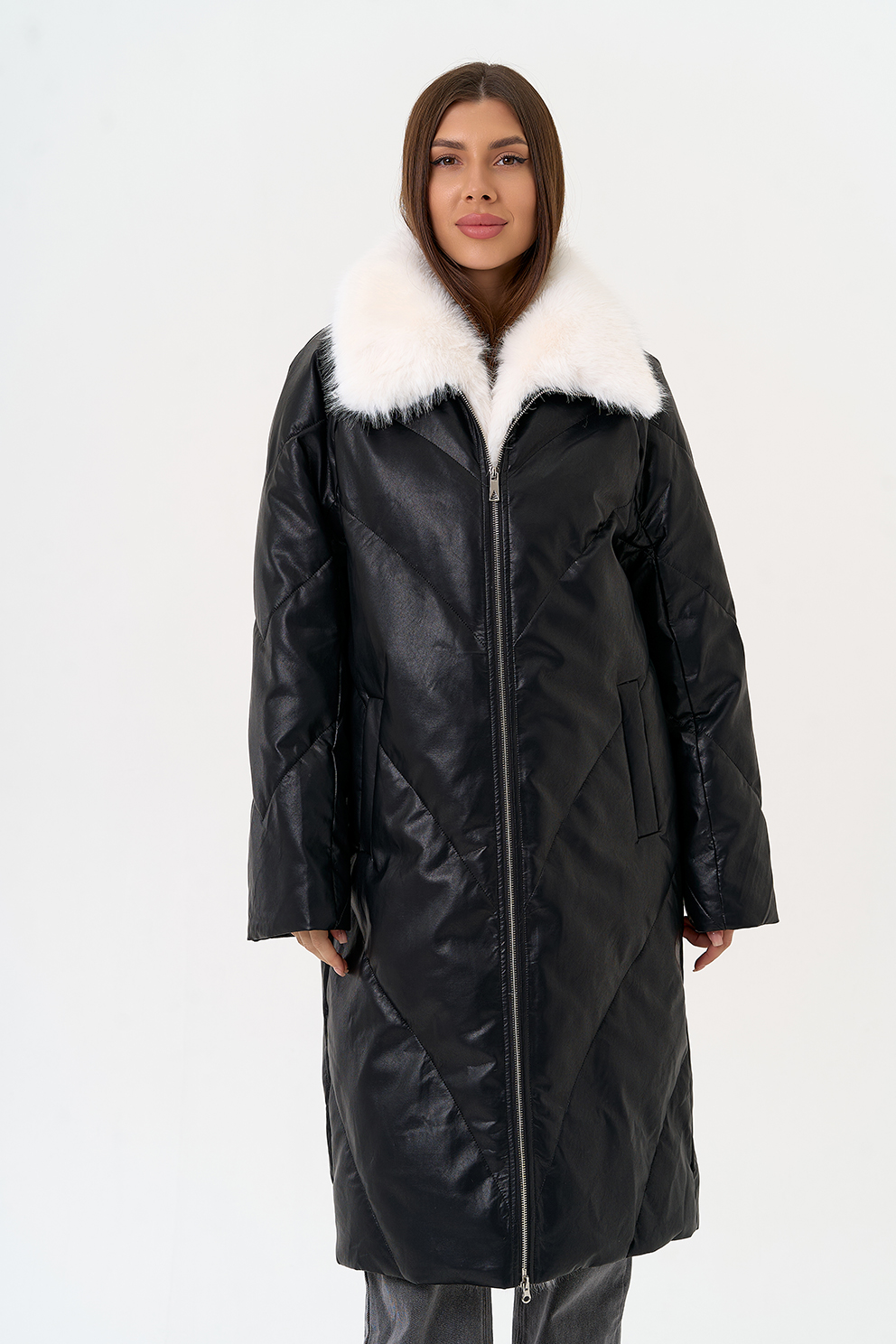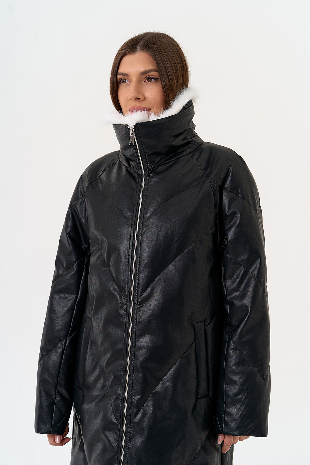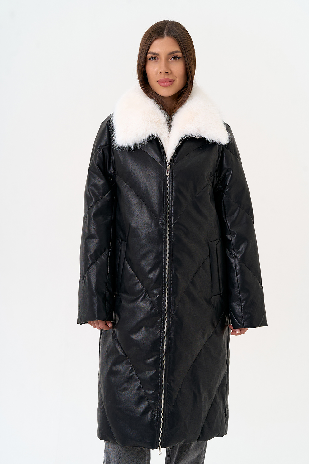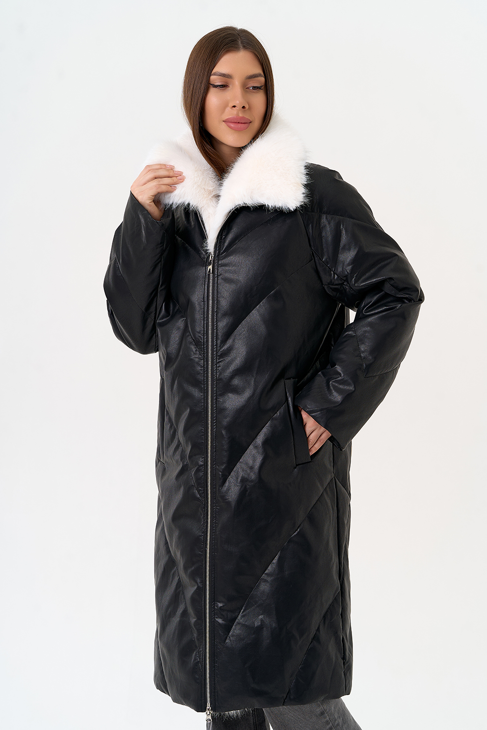 Отделка воротника - съемный эко мех, цвет белый