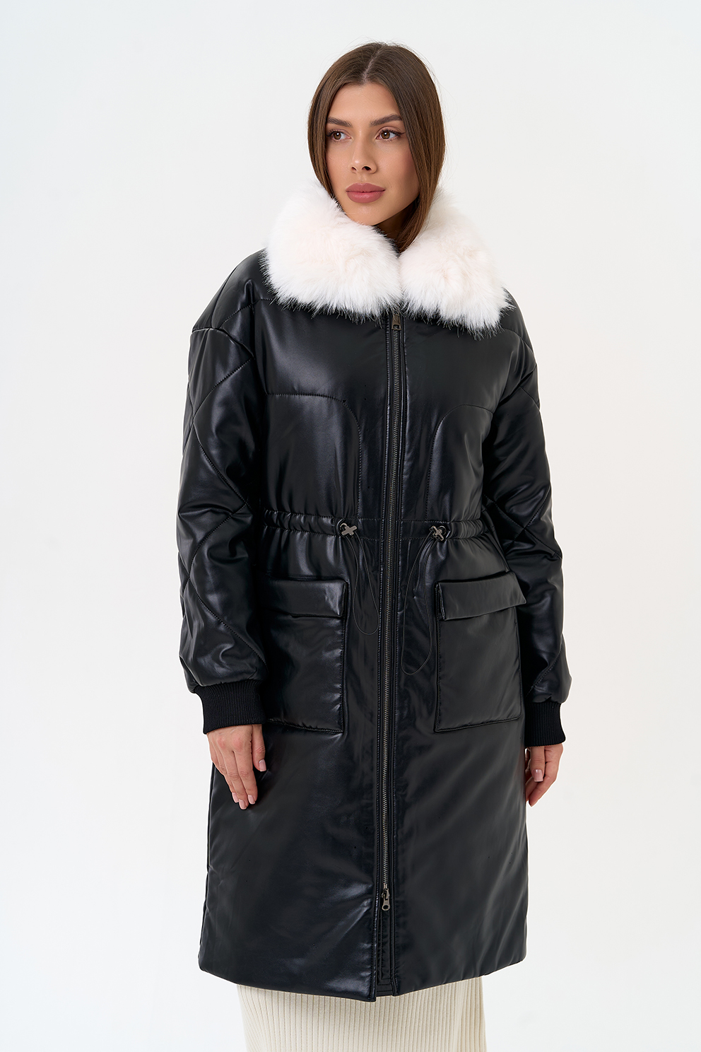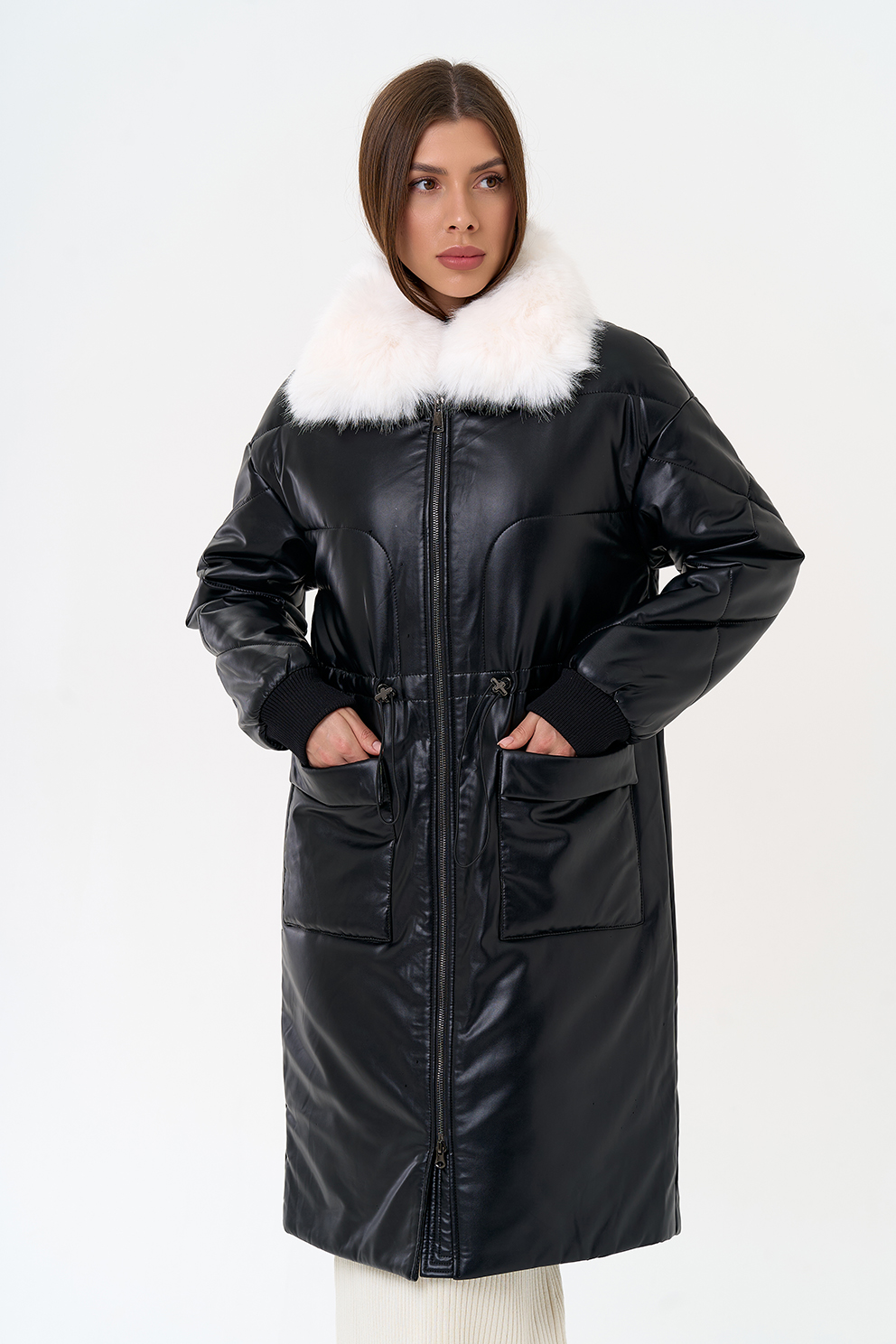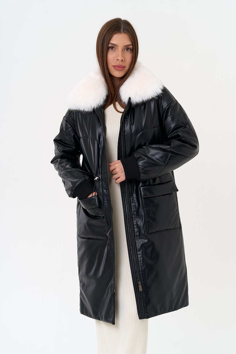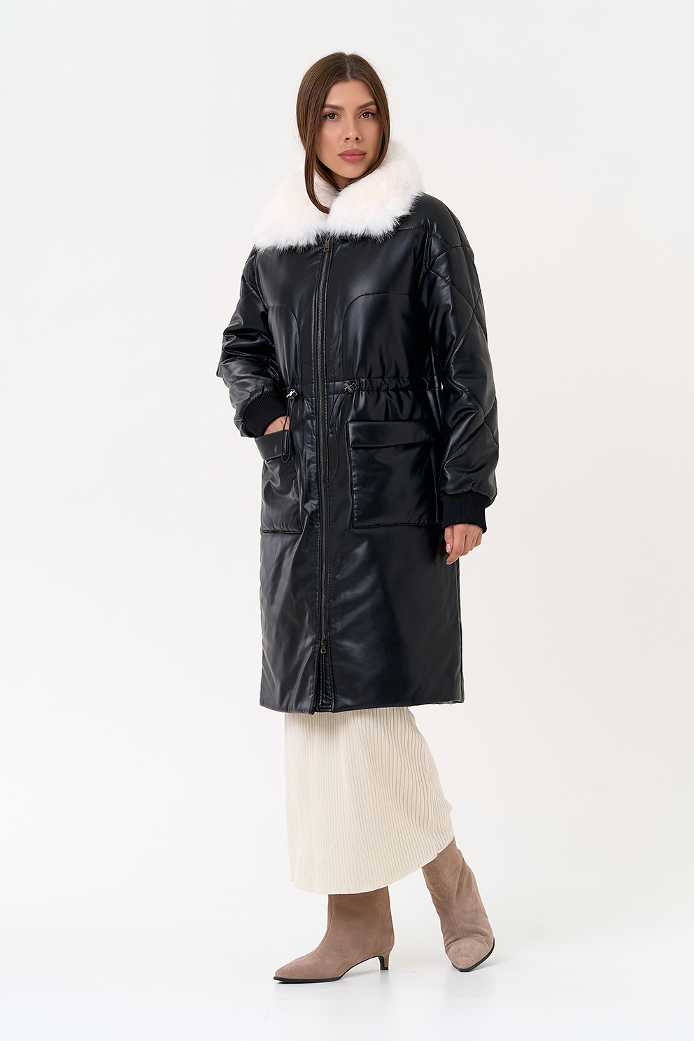 Отделка воротника - съемный эко мех, цвет белый