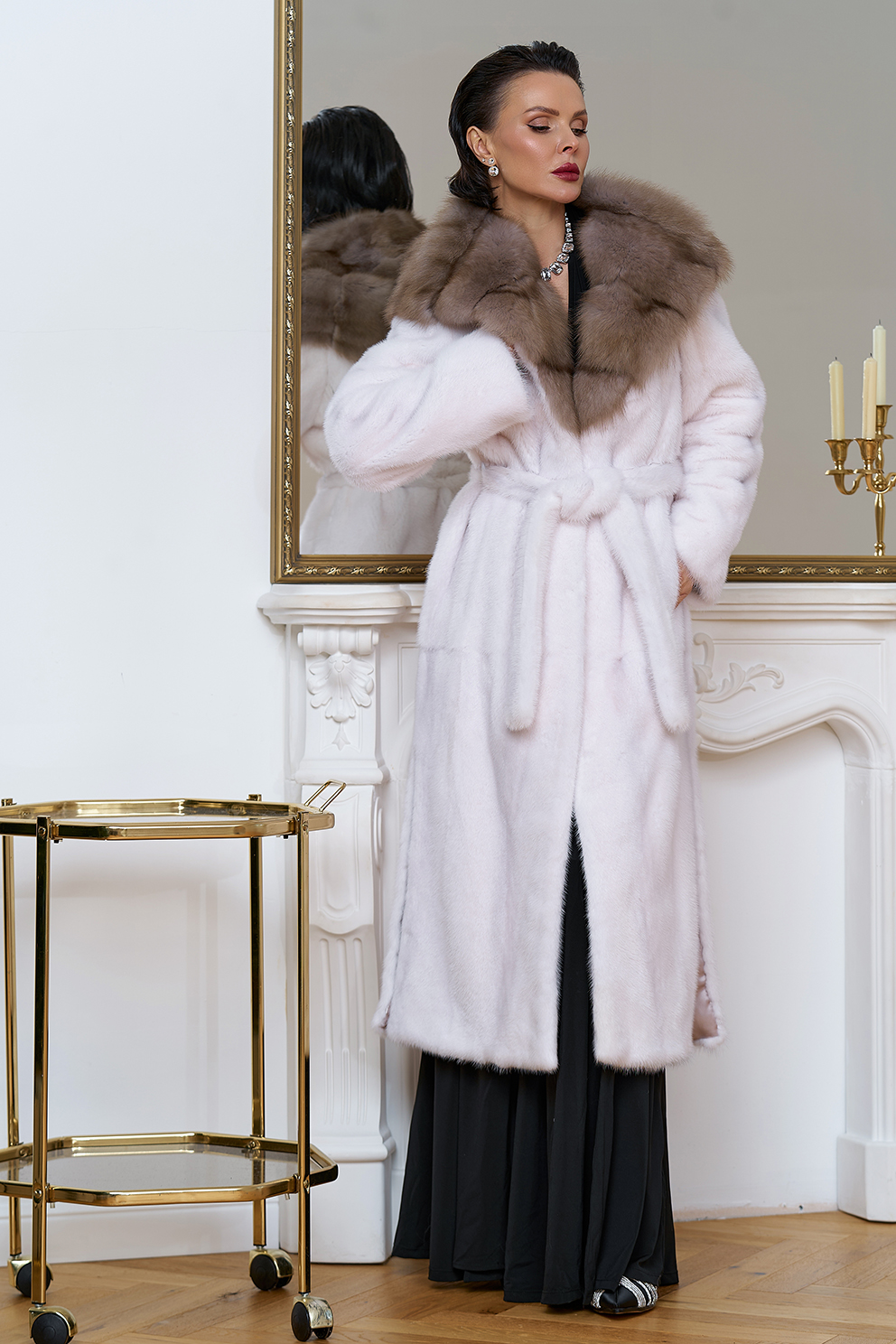 Тип ворота - капюшон, отделка куница